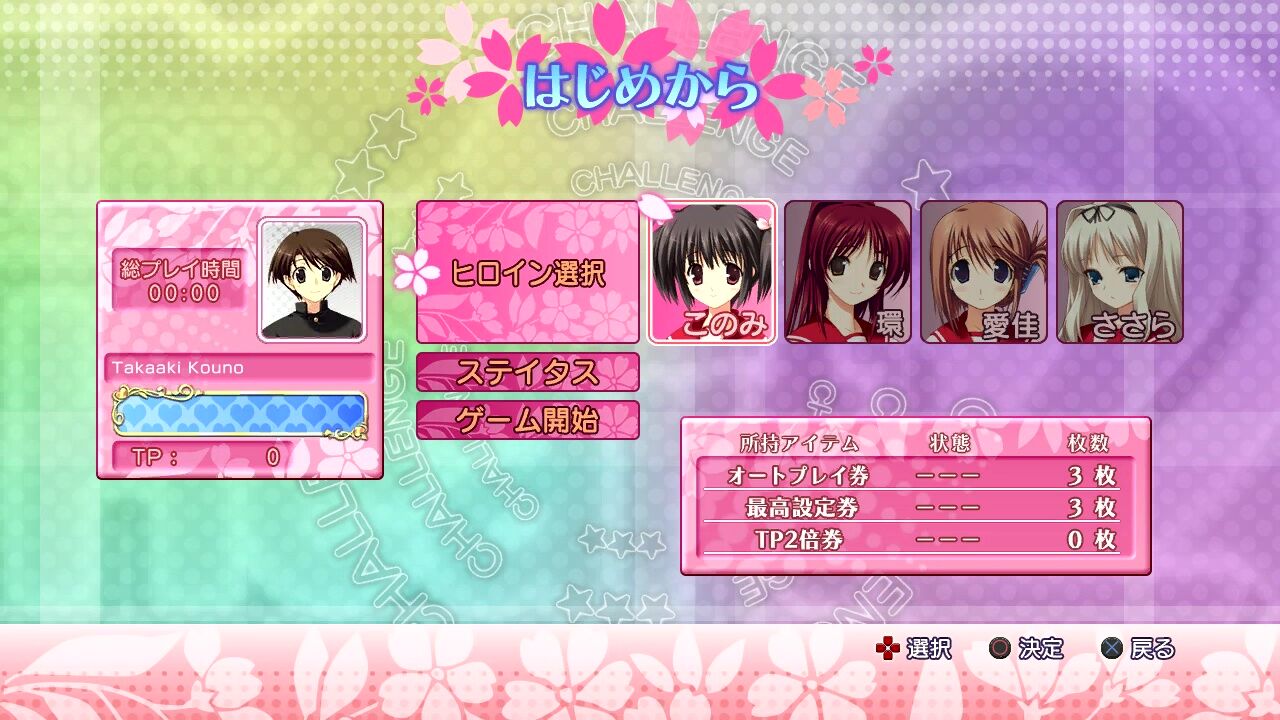 台の設定にヒロインの選択…背景パネルの設定などが出来るみたい…