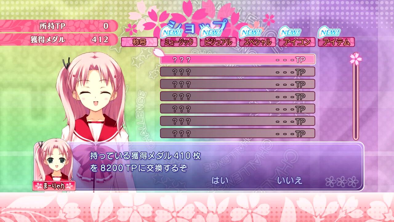 チャレンジモードで獲得したメダルはショップに移ることで…