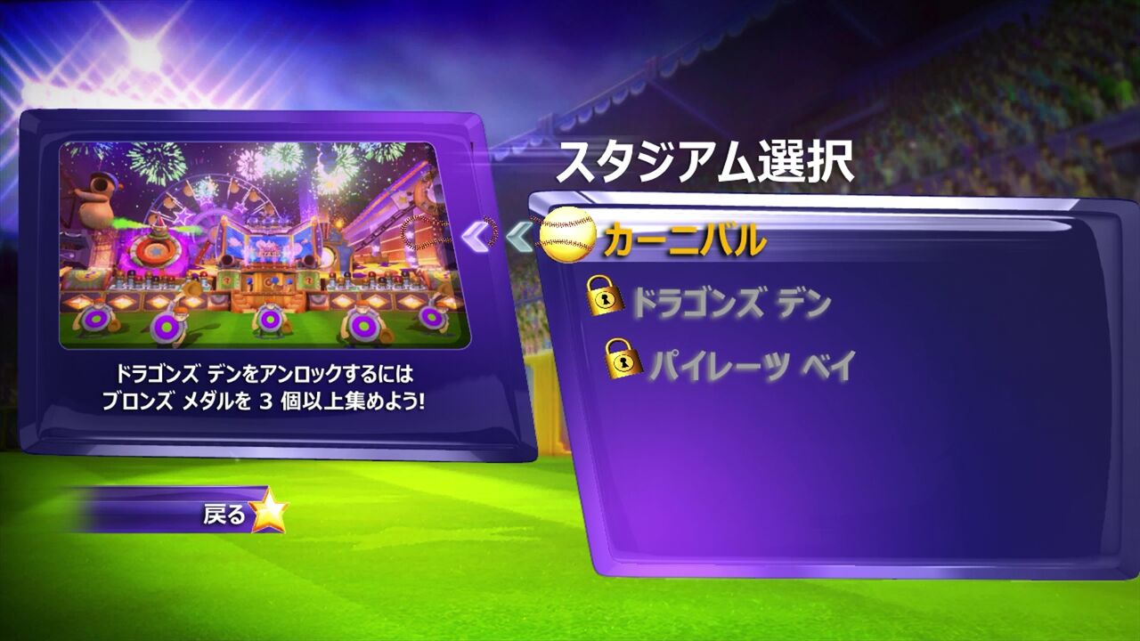 スタジアムは複数用意されているけども、カーニバルとやらで勝利を収めねば開放されないゾ!