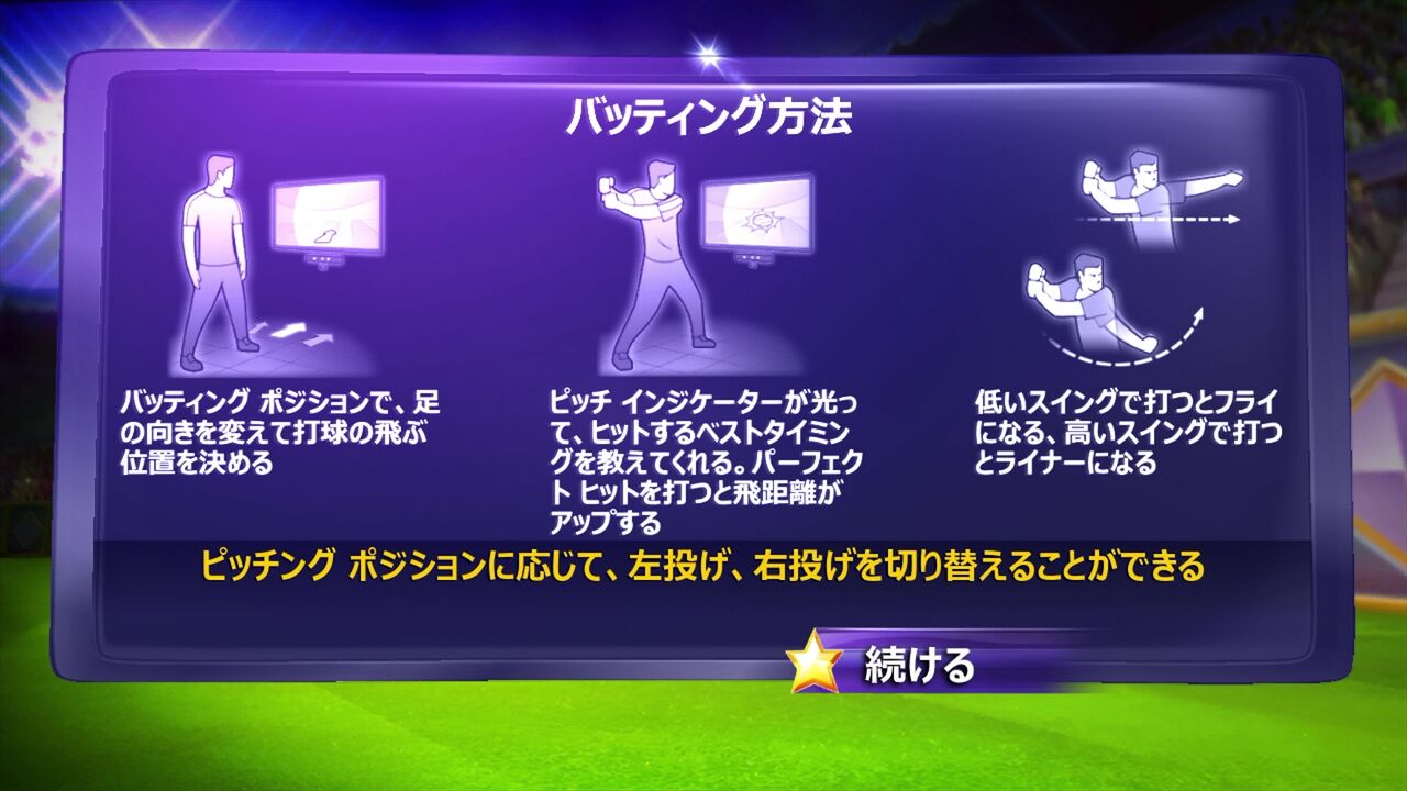 飛んでくる球に☆マークが付いている時にヒットさせると完璧な当たりだ!
