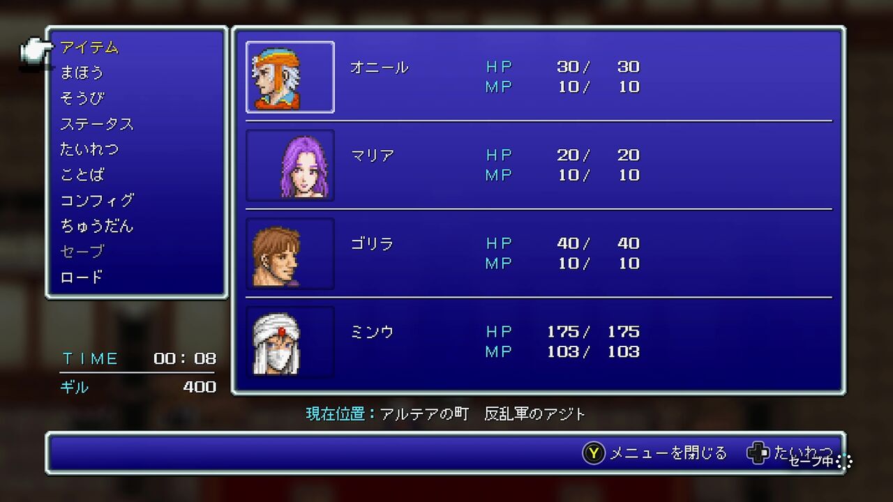 HP、MP1につき1ギルなんでネ…マジで宿屋価格が暴利なんですが…