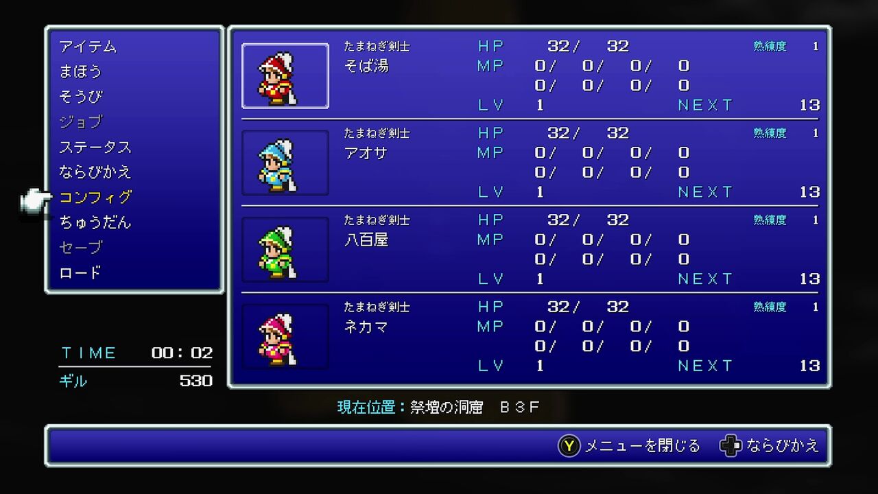 レベル上げも…まぁ…オニオン装備一式を全員分集めてればネ…