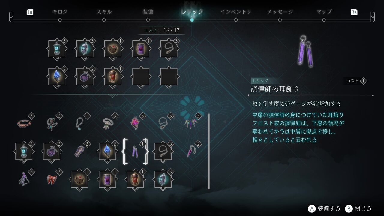 特殊な効果を持つレリックの装備によりステータスや能力を強化出来るゾ!