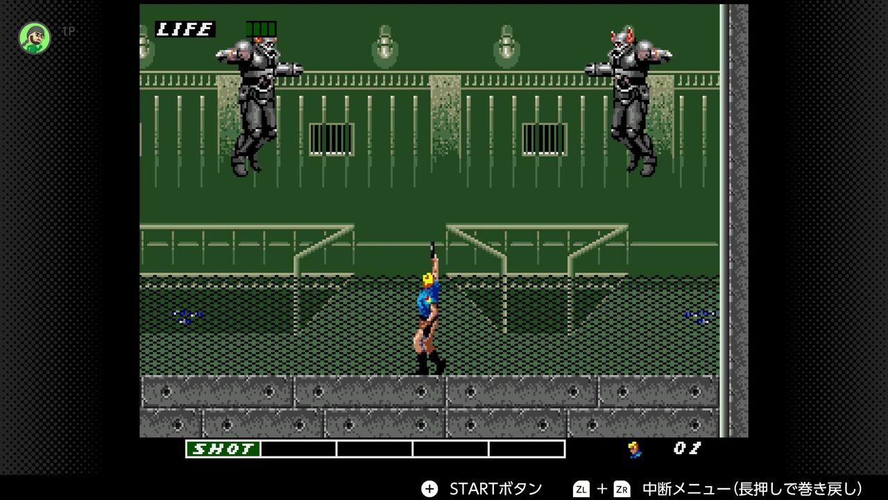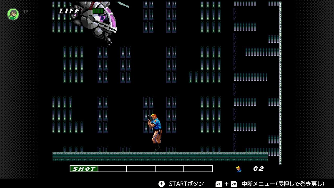 操作はジャンプとショット…十字キーの上+ショットで上にショット…