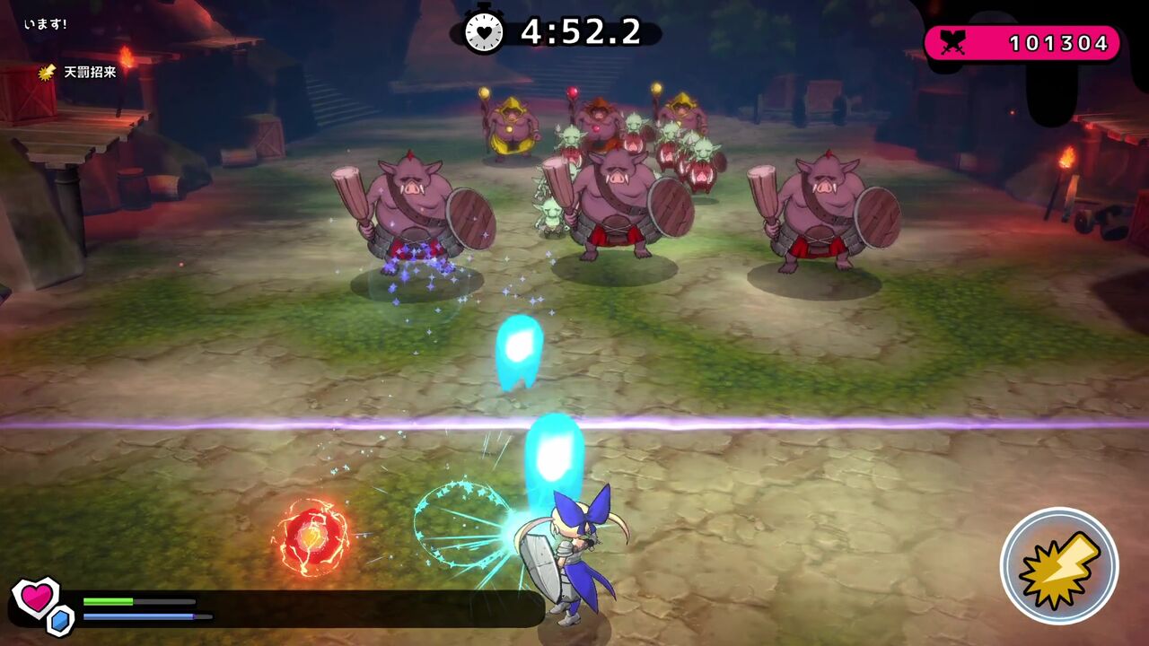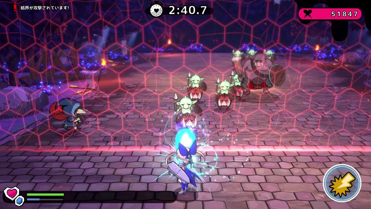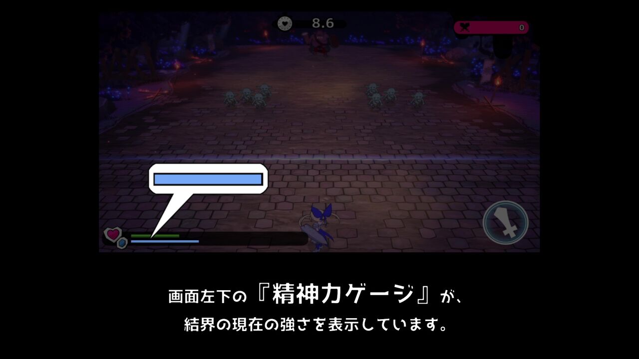 左下のゲージ、ハートマークはHPで青いのは結界の耐久度…