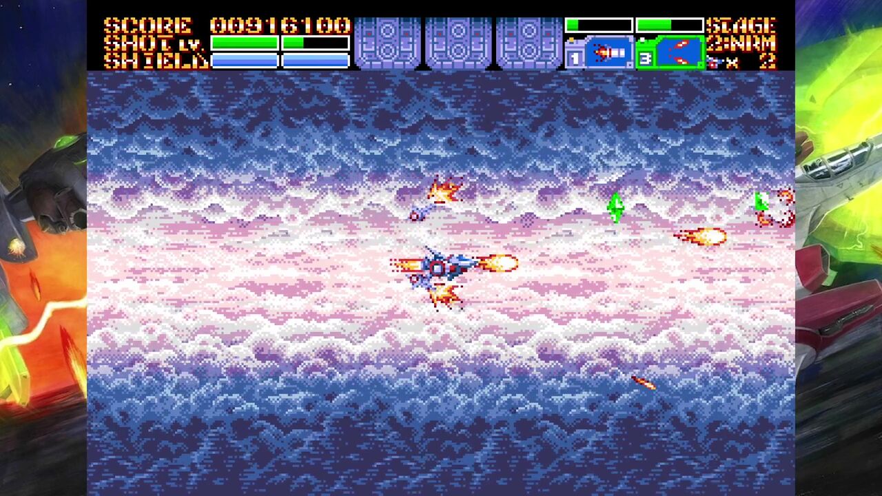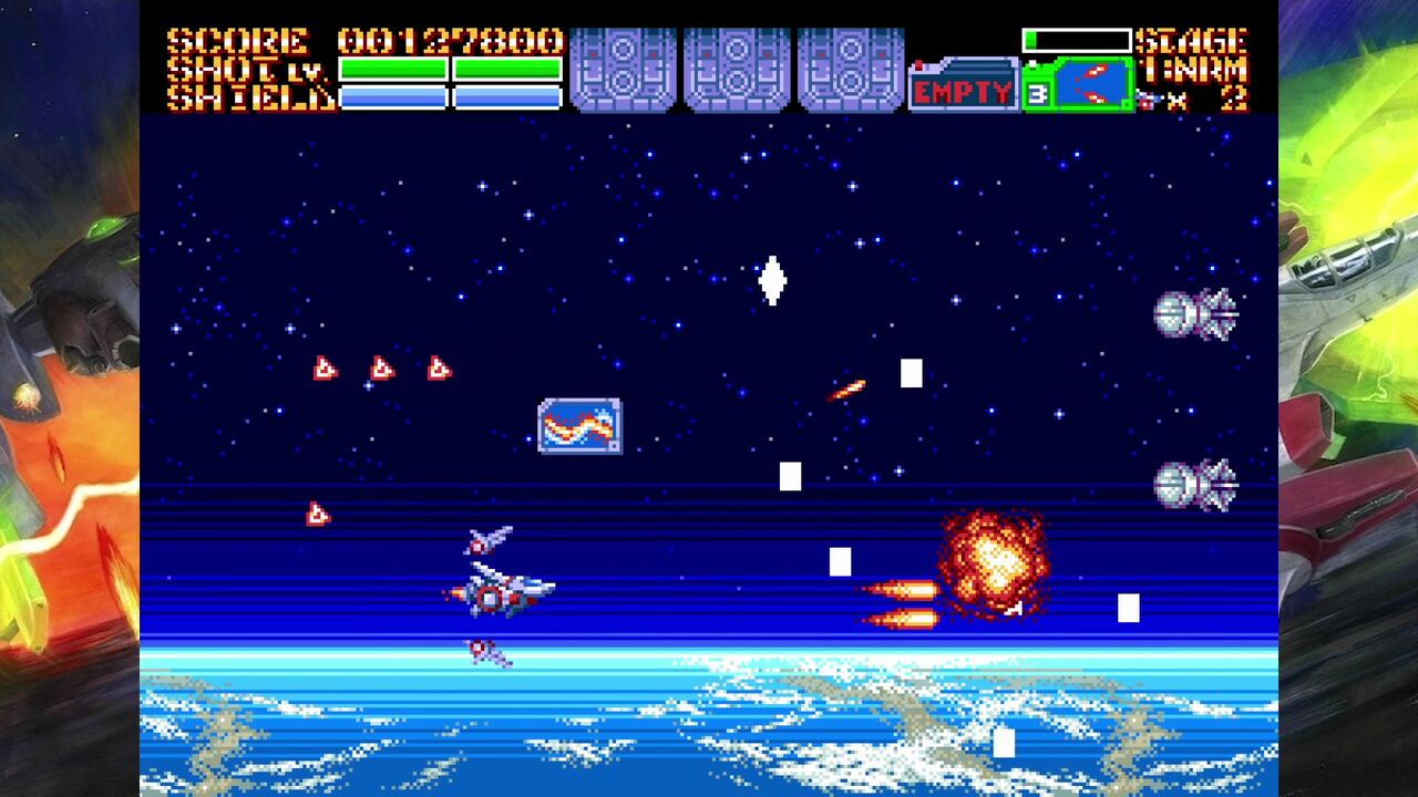 ダメージを受けるとショットのパワーも落ちるし、サブウェポンも消滅したりするので