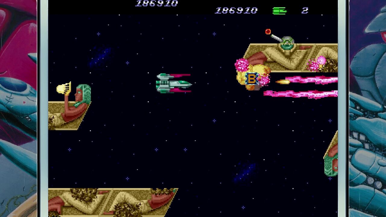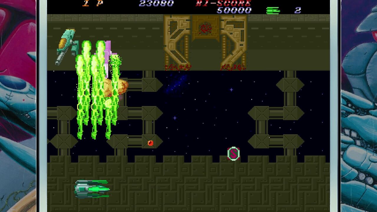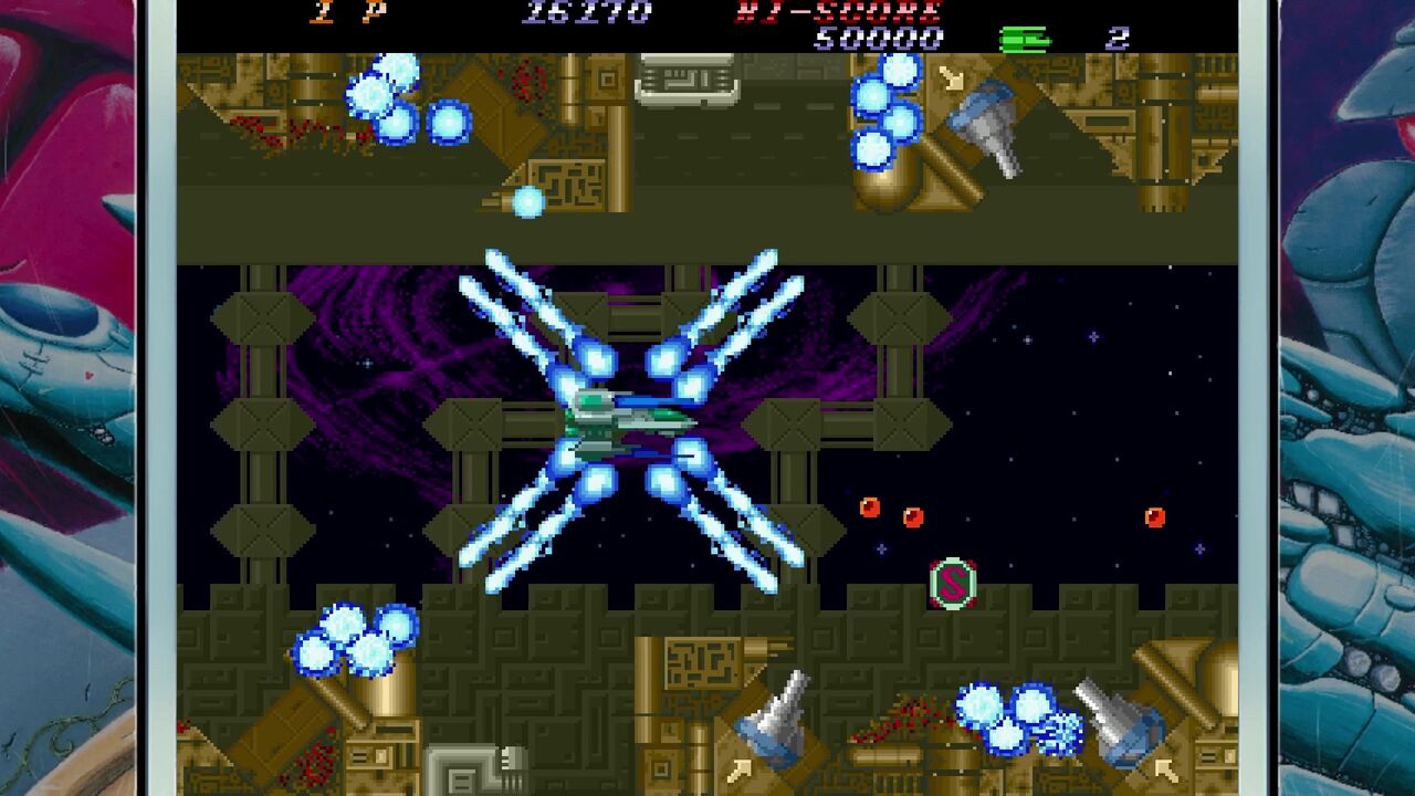 どうやら1P版は強化ショットが2連射…純粋に火力が2倍出せるみたい…