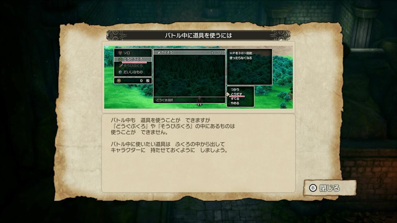 ただし、道具袋のアイテムを戦闘中に使用することは出来ないので