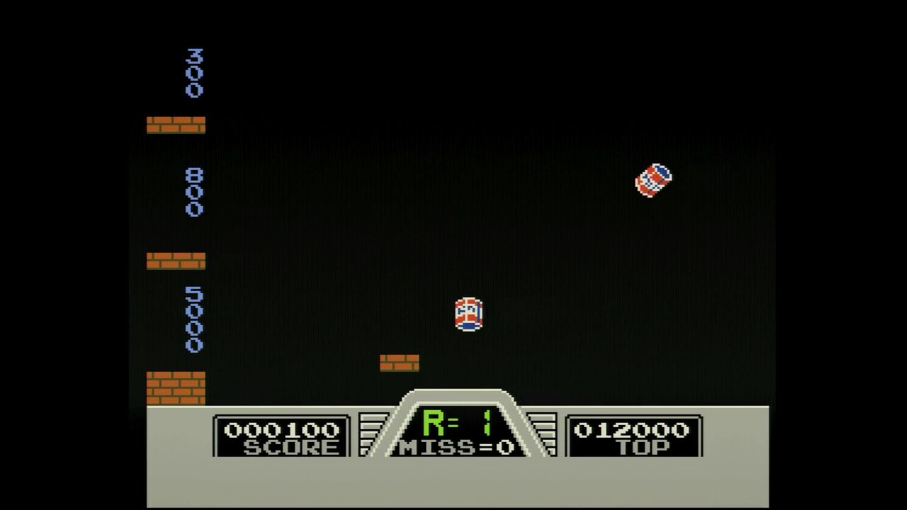 飛んできた缶を落とさぬように銃で撃ち、左側に誘導するのだ!