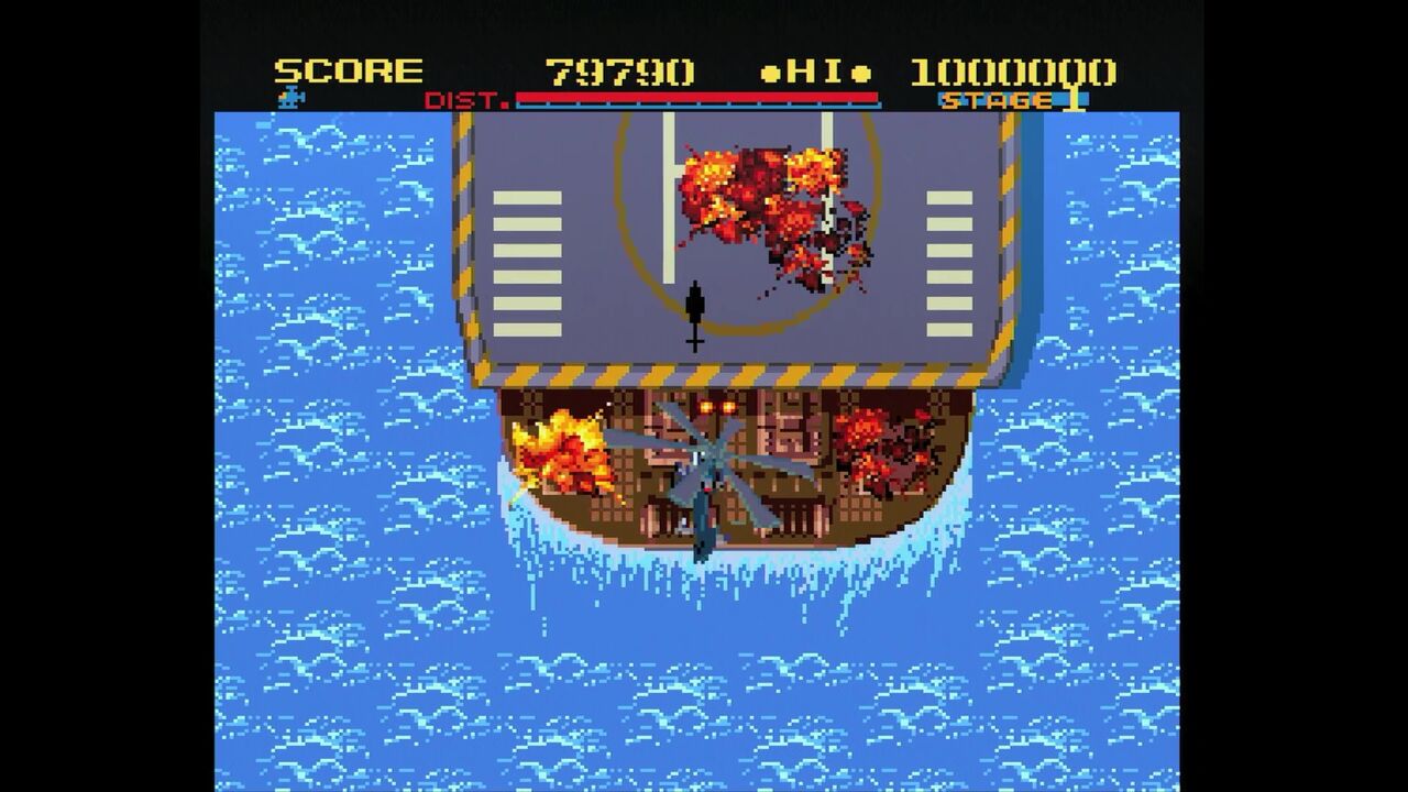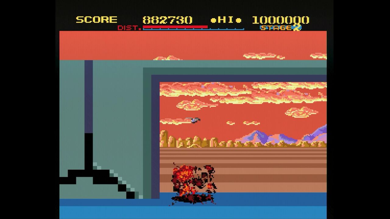 自機のやられ演出も爆破して終了…