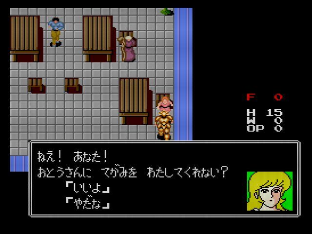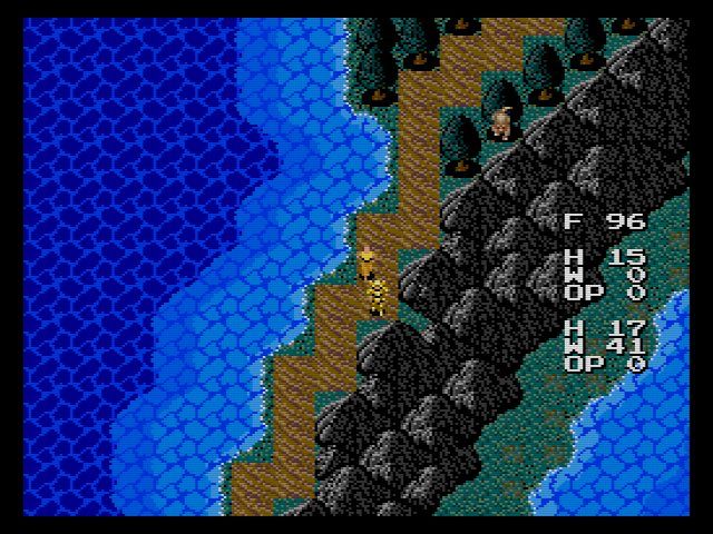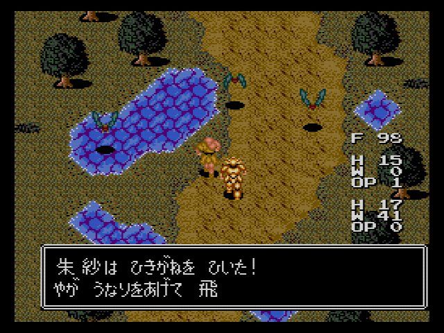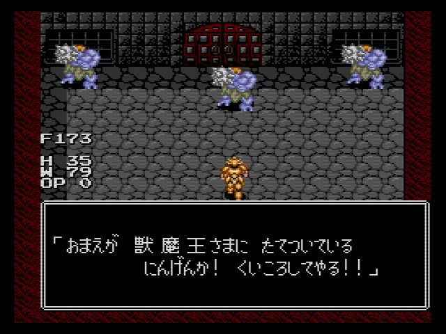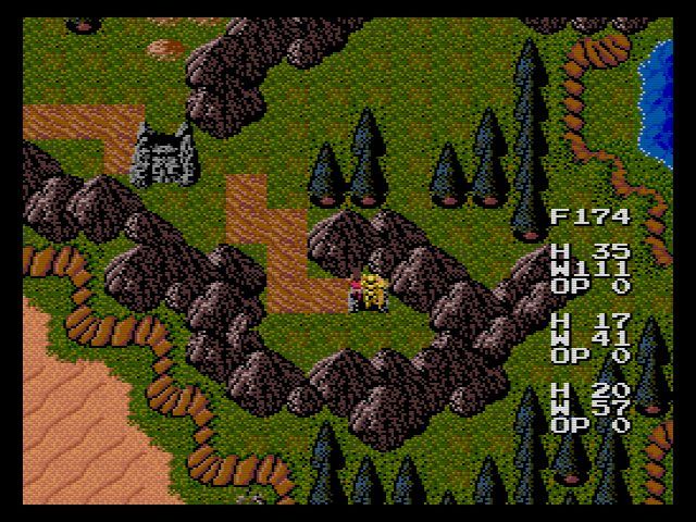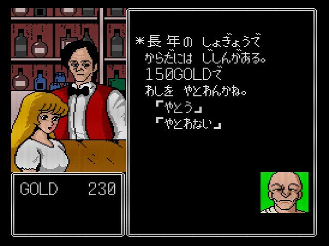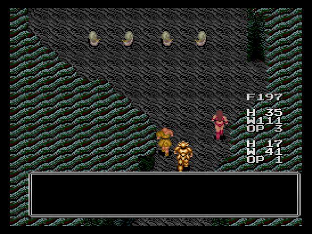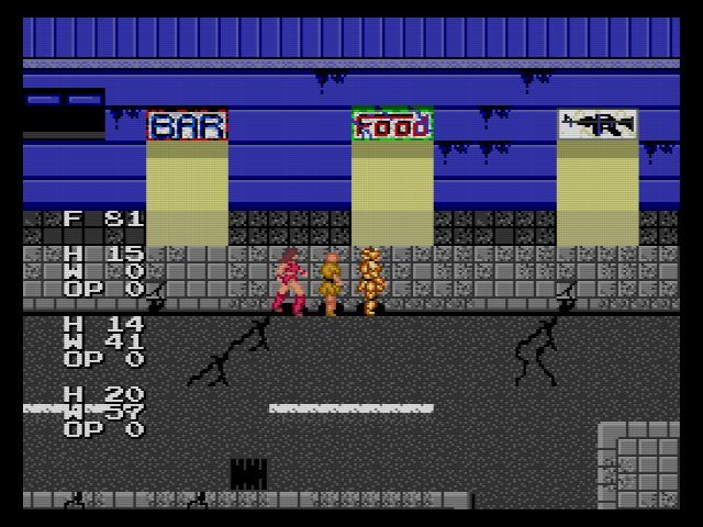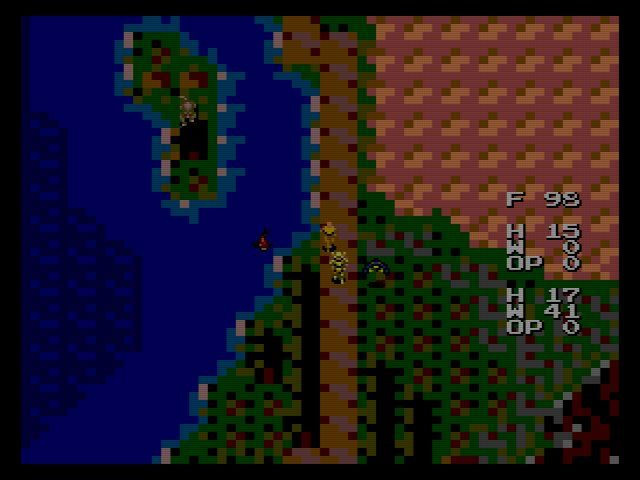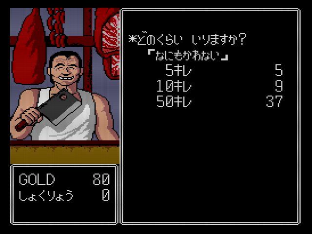 当時のRPGにしては細かいのが食料システム…マップ外を歩くと食料が減って行き、食料が切れるとHPがモリモリ減って行きます。