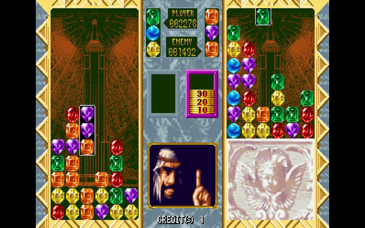 一定数の宝石を消すとコインが溜まり、Bボタンを押すと相手のに攻撃…