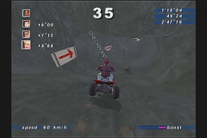 …また、スノボーからやり直して何とかゴール…おや…?何かバギーのような物がアリマスネ…