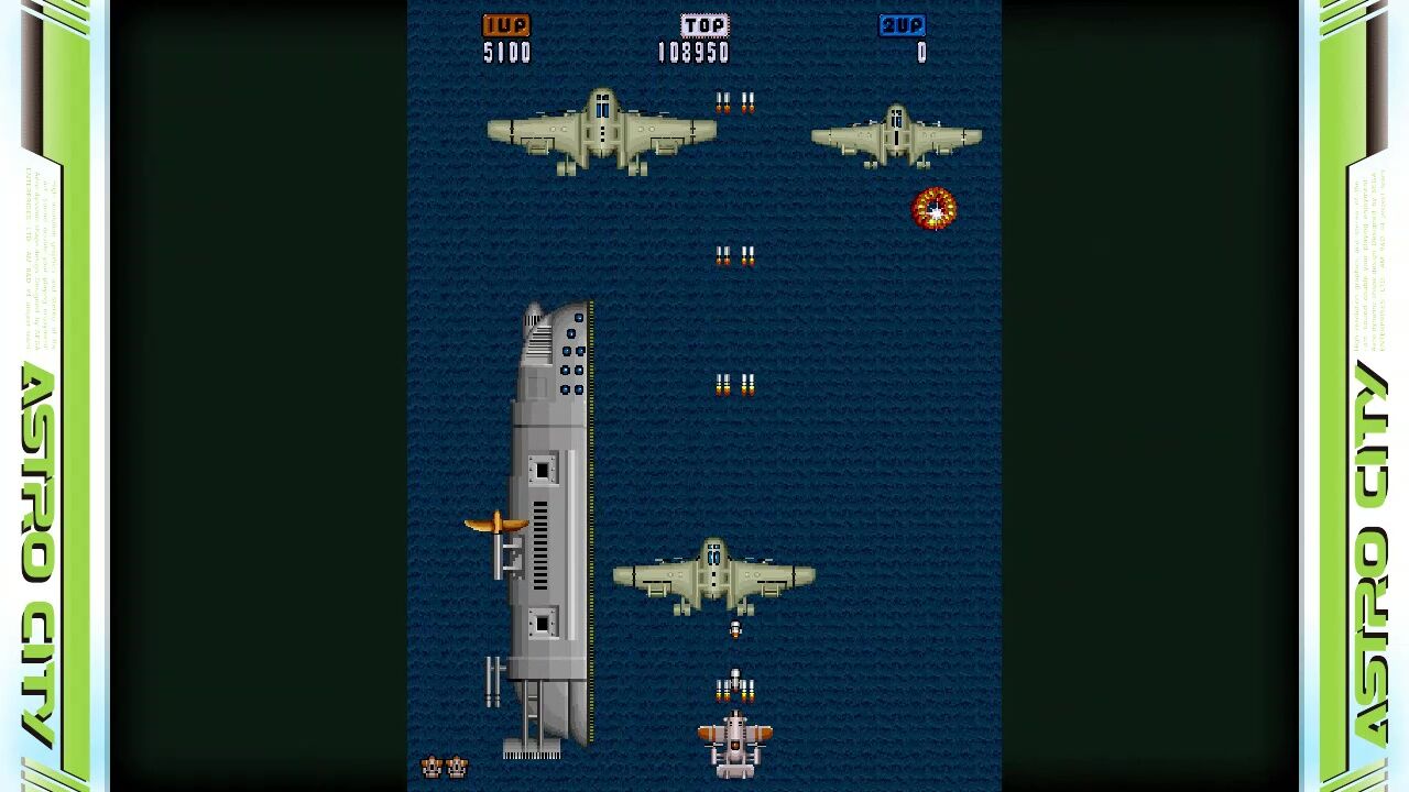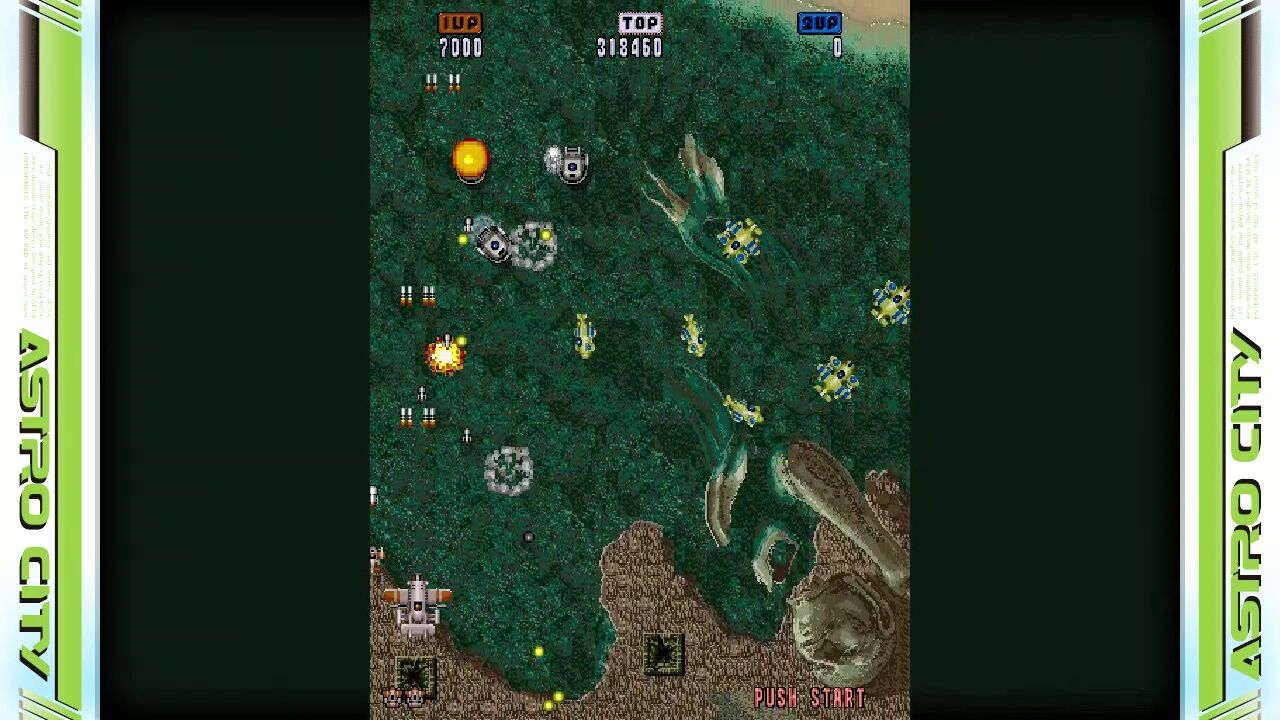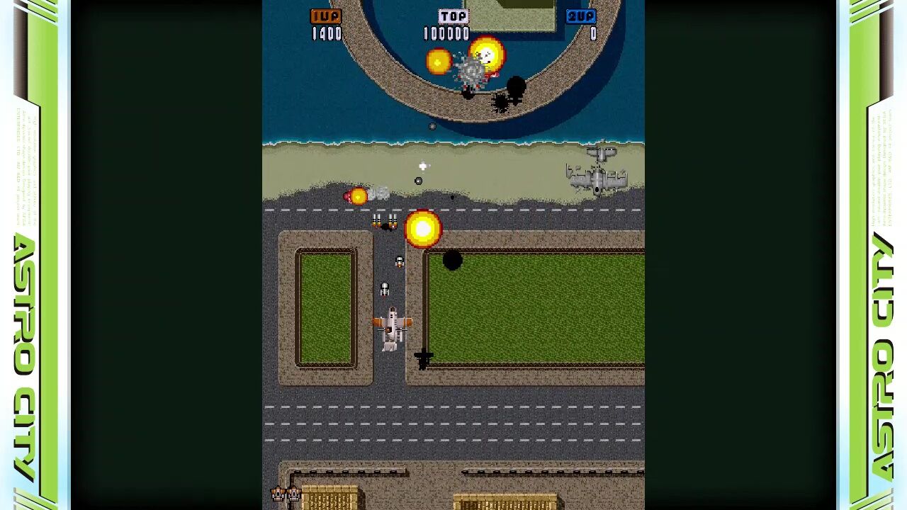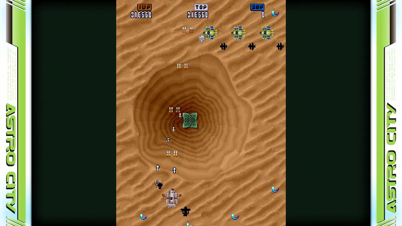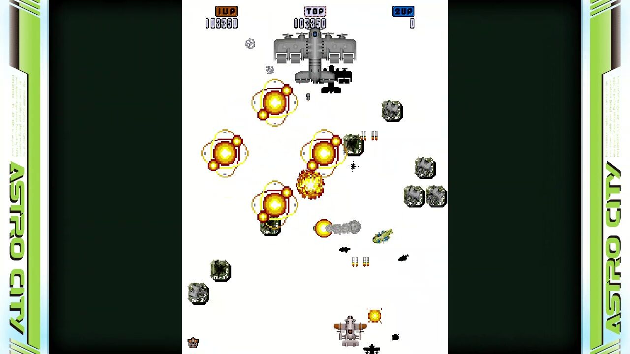 ショットのついでに発射される対地攻撃が制御しきれず、地上からはおびただしい数の弾が!