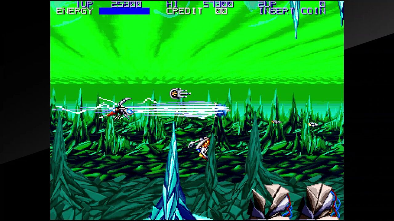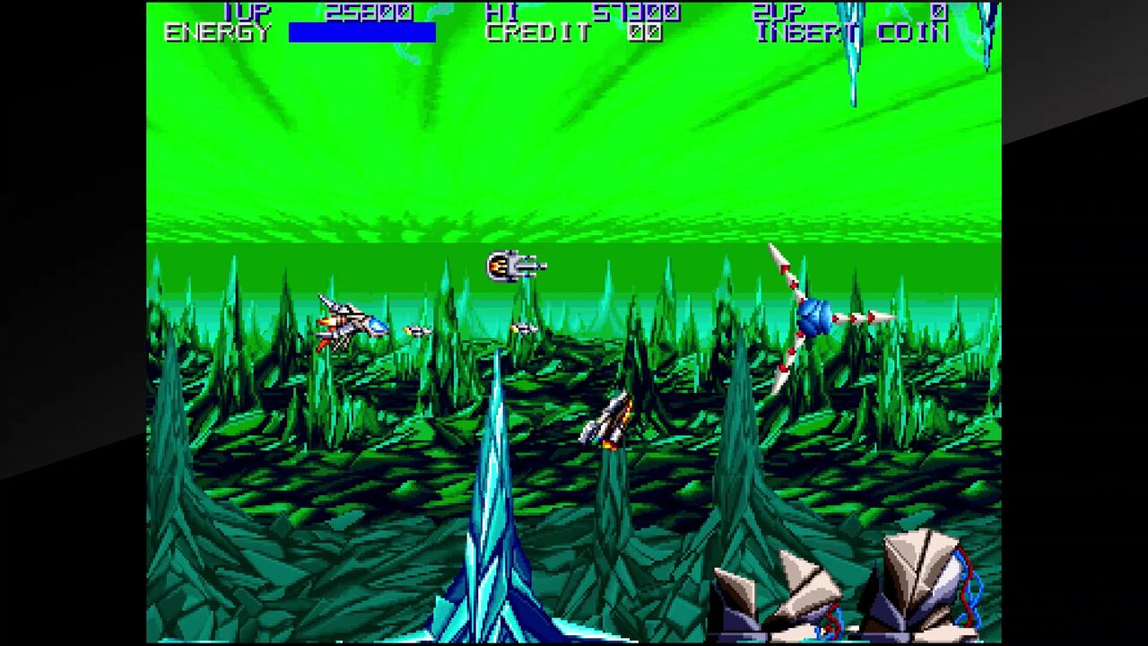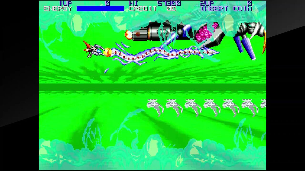また、様々な種類のショットも無くなり、パワーアップ方式…