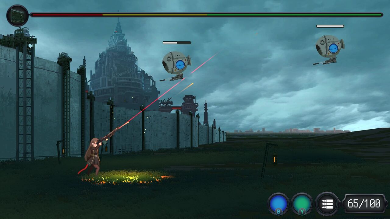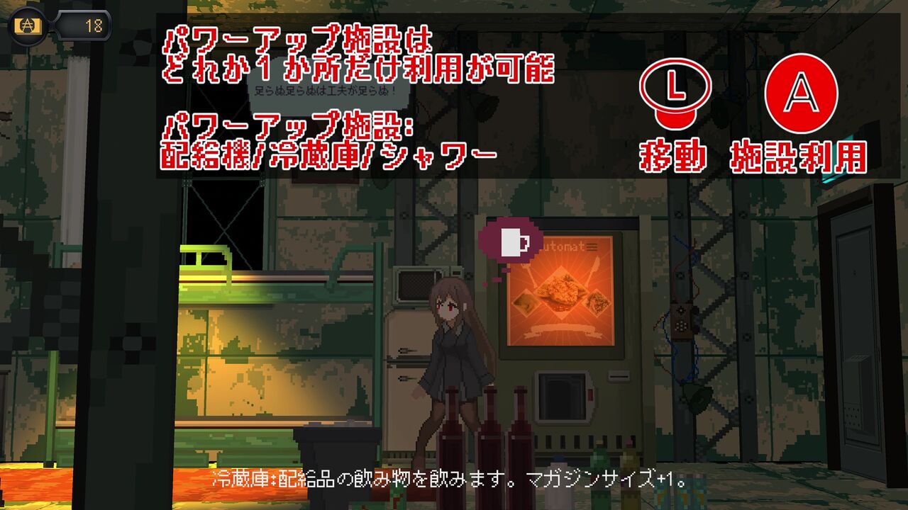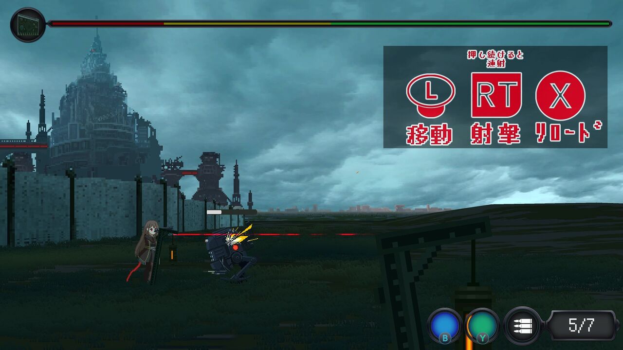操作は右上にある通りですが、右のアナログスティックで銃の向きを8方向変えることが出来ます。