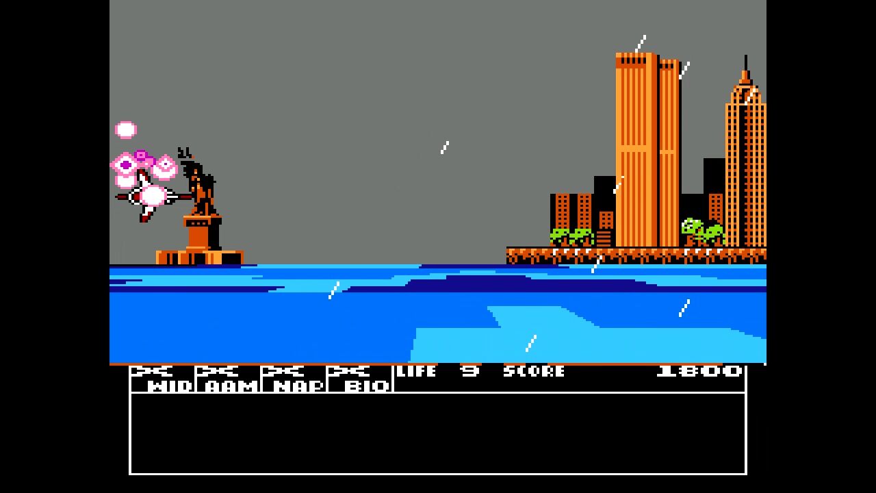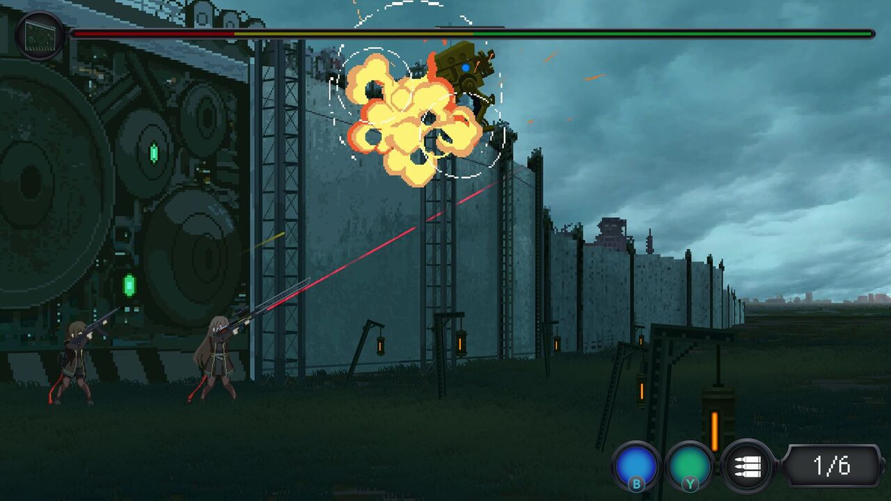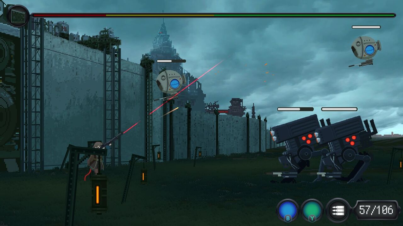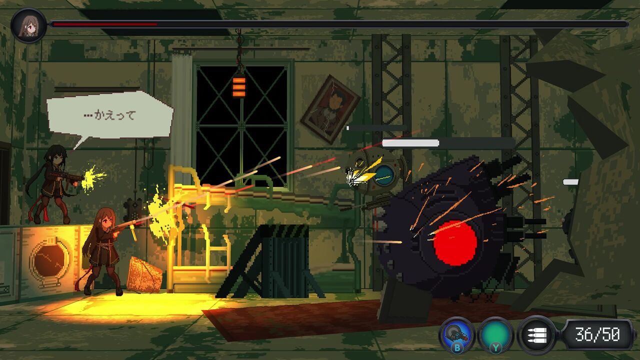 操作は右上にある通りですが、右のアナログスティックで銃の向きを8方向変えることが出来ます。