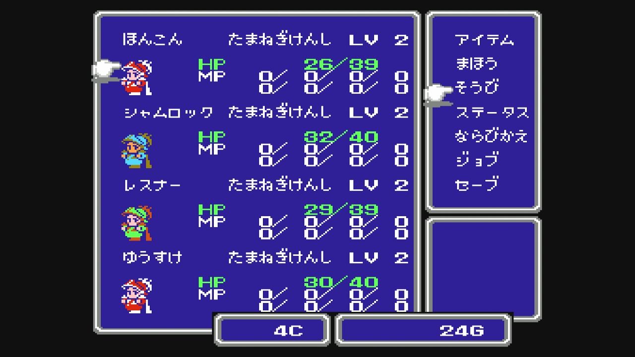 FF3はまだコマンド方式…さらに、にげるを選択したキャラの防御力は0だったかになるらしく、攻撃を受けると致命的なダメージを受けたりします。