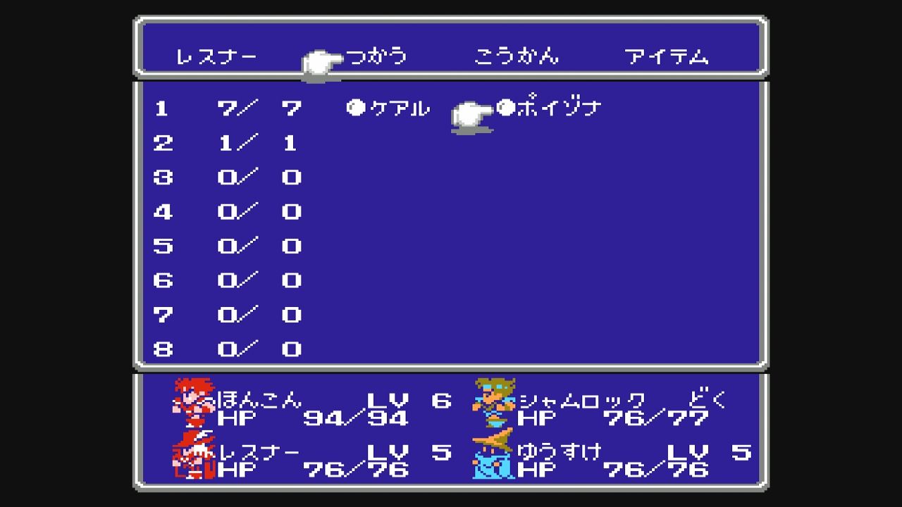 後に発売されるFFⅤと違い、魔法は共有ではないのでキャラごとに違う魔法を覚えさせるというのもアリですね…