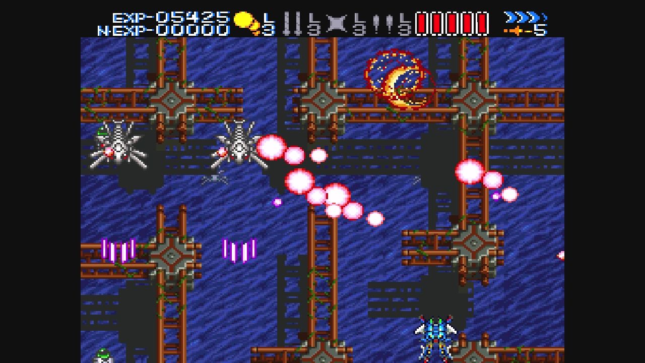 自機は体力制で5発の被弾まで耐えられる模様…