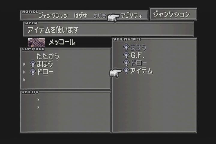 GFを装備してアビリティを付けないと『たたかう』しか出来ないんですよネ…