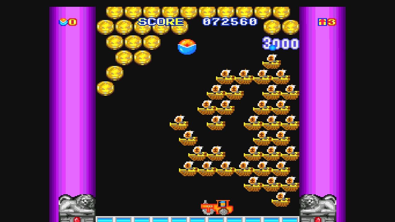 ブロックに当たってしまったり、玉が画面外に落ちてしまうと1ミス…