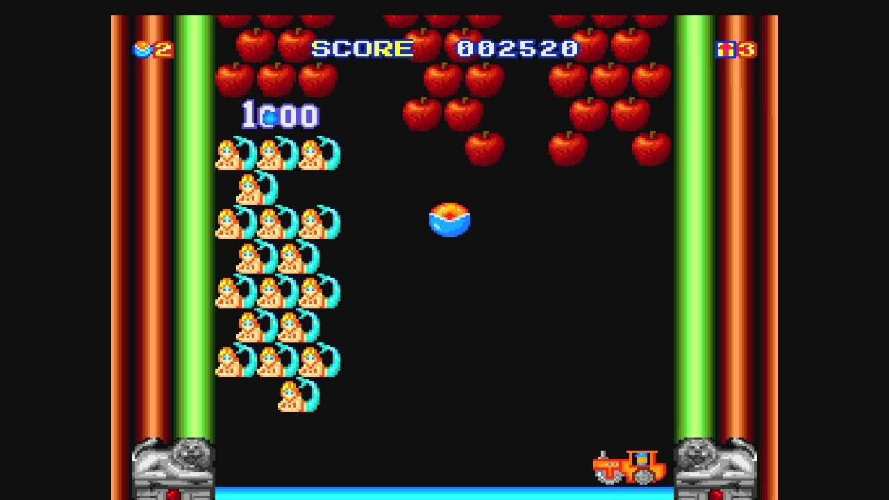 ブロック崩しと違い、自機は縦横無尽に画面内を動くことが可能!