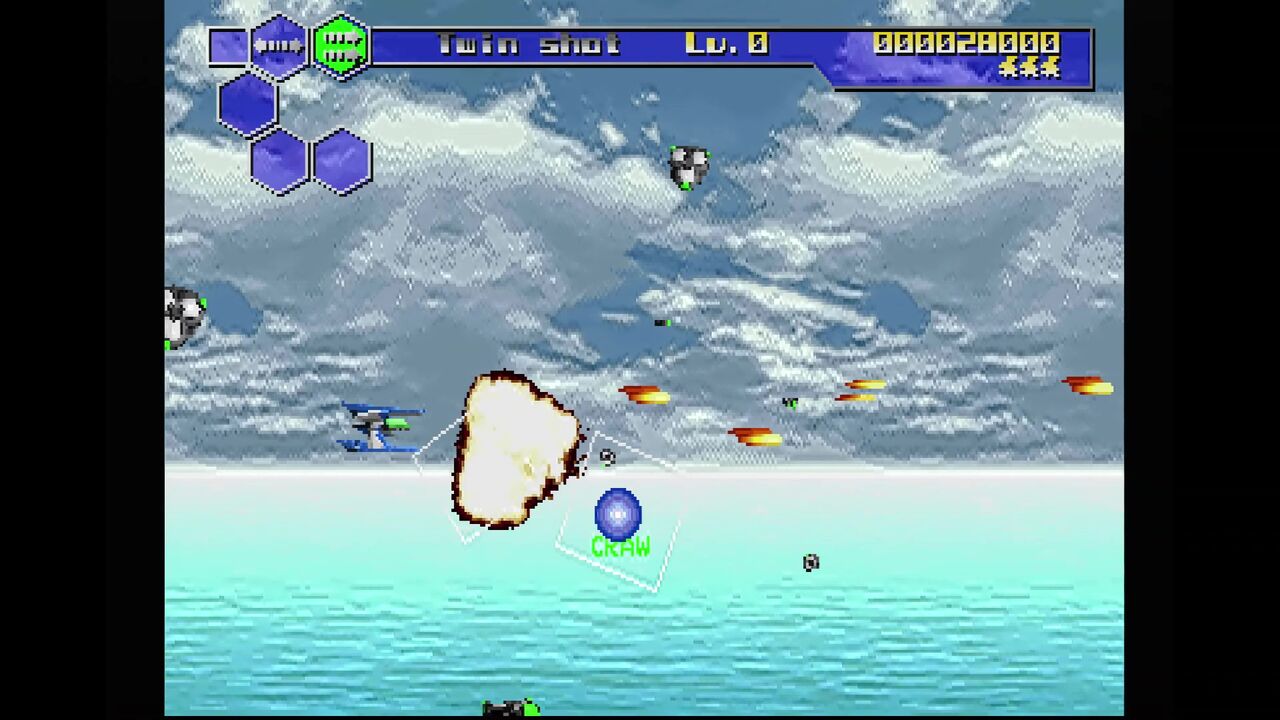 さて、かっこよく水しぶきをあげて登場する中ボスですが、水しぶきが映っていなかったッ!