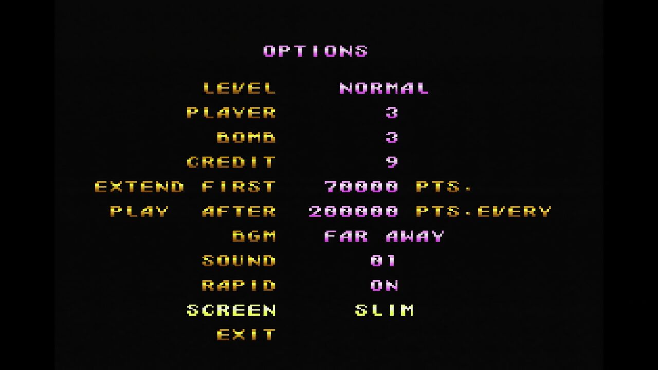 通常なら、難易度設定くらいしか出来ませんが、残機、ボム数、クレジット!!