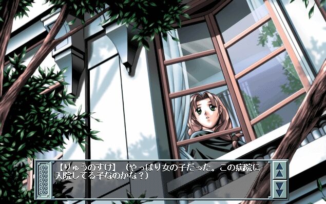 っと、ションボリメガネが消えたら、病院の窓に注目…